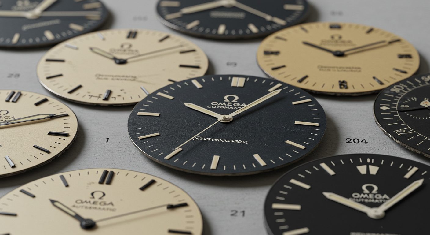 - ロゴ・書体:1950年代は筆記体ロゴやアプライド(立体)ロゴが多く、1960年代にかけて**「Seamaster」筆記体+バーインデックスの組合せが増加。1970年代はTVスクリーン型やCライン系**のモダンケースが現れ、ロゴも太字・幾何学的な印象に。